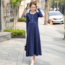 2017春孕妇装韩国代购孕妇长裙长袖开襟孕妇裙修身韩版新款现货