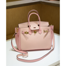 高品质女包 春夏定制款 粉配粉铂金包荔枝纹头层牛皮手提单肩包