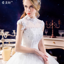 婚纱礼服2017新款新娘韩式双肩齐地欧美奢华钻宫廷绑带显瘦大露背