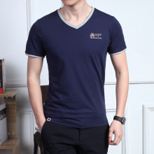 战地吉普夏季薄款休闲韩版男装V领短袖T恤男大码圆领运动半袖汗衫