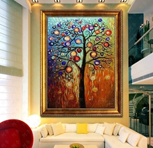 纯手绘油画抽象发财树玄关画电箱装饰画走廊无框画竖版挂画墙壁画
