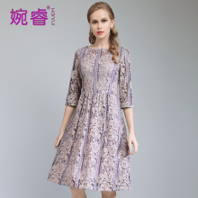 蕾丝连衣裙女婉睿2017春夏新款时尚修身显瘦大码A字裙气质长裙