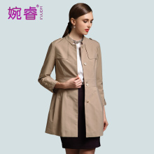 婉睿2016年春秋季新款修身显瘦小立领通勤长袖小风衣女式中长款