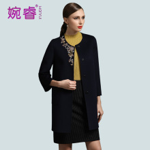 100%羊毛双面呢子大衣婉睿2016秋冬新款订珠毛呢外套女中长款修身