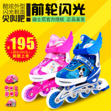 迪士尼轮滑鞋溜冰鞋儿童全套装 男女闪光轮可调滑冰鞋旱冰鞋