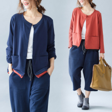 超百搭 纯棉无领单排扣短款外套 春季新款韩版针织开衫上衣女宽松
