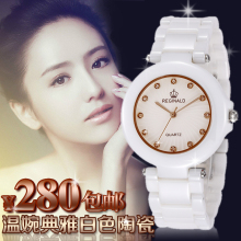 皇冠正品女表韩国潮流时尚白色陶瓷手表防水钻女士石英表女式腕表