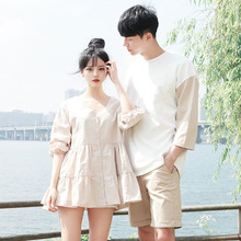 2017夏装新款情侣装韩版长袖开衫公主裙女装宽松夏季短款连衣裙