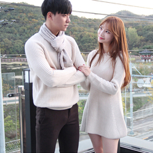 2016秋冬新款休闲圆领长袖毛衣情侣装针织毛衫女装修身连衣裙