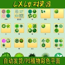 PS树木植物彩色平面图例 园林景观设计PSD平面植物素材库自动发货