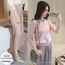 韩国代购夏装蕾丝拼接孕妇雪纺裤休闲孕妇九分裤百褶阔腿托腹裤潮