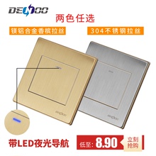 丹珑开关插座面板单控二开任意点开关带LED夜显平面开关K金香槟