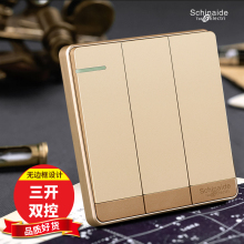 86型号插座无边框大板香槟金面板三开双控开关 3双联 新品特价