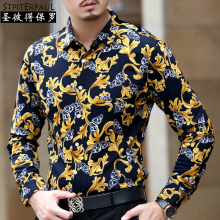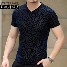 新款夏款花衬衫短袖韩版修身时尚镂空休闲衬衣金丝绒男装衬衣潮男