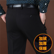 中年加绒西裤男士秋冬款免烫中老年保暖长裤爸爸加厚西裤高腰