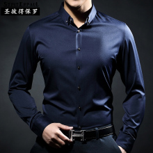 衬衫男长袖春夏丝光棉纯色修身韩版免烫商务休闲男士春秋薄款衬衣