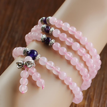 开光天然粉玉髓108颗佛珠手链 多圈手串 招桃花旺姻缘 饰品女水晶