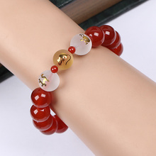 天然红玛瑙狐狸手链女款黑曜石狐狸单圈手串男女款水晶转运手链