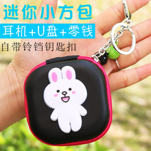 mryc 迷你耳机收纳盒 卡通耳机包 方形零钱包 电池收纳盒带钥匙扣