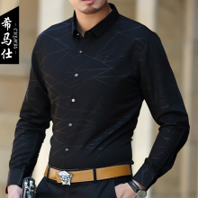 希马仕衬衫男长袖2017春季新款免烫商务休闲印花衬衣男中年爸爸装
