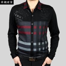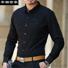 帝潮世家2017春季新款男士长袖衬衫中年印花大码衬衣男免烫爸爸装