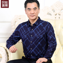 2017夏装中年男士长袖衬衫老年人上衣条纹衬衣男装商务休闲衬衣男