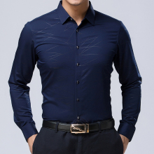 蓝色剑鱼春装新款男士胶印蝴蝶保暖韩版长袖衬衫中年休闲长袖衬衫
