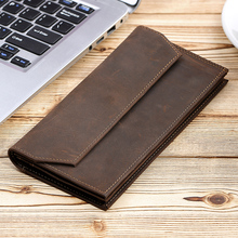 潮牛欧美复古个性疯马皮手工牛皮真皮多卡位钱包男短款皮夹竖款
