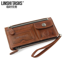 临时任务男士钱包新款韩版男长款真皮多卡位牛皮钱夹女复古皮夹潮
