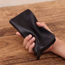 男士头层牛皮手工复古商务长款拉链钱包软皮简约竖款真皮日韩手包