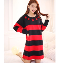 睡衣女秋纯棉长袖睡裙女秋冬韩版条纹宽松可爱公主家居服长裙全棉