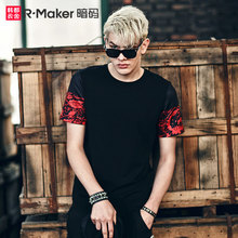 暗码2016夏季新款黑色圆领半袖修身休闲印花短袖t恤男青年潮流呟