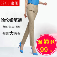 逸阳女裤2017春夏新款休闲裤不加绒小脚铅笔裤修身显瘦黑色长裤子