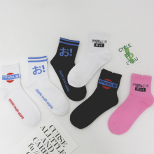韩国ulzzang原宿港风日文字母二杠男女中筒棉袜 情侣条纹长袜子潮