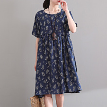2017夏季新款复古文艺小碎花棉麻中长款连衣裙高腰褶皱宽松女装