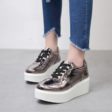 艾可茜尼韩版春秋松糕鞋女厚底漆皮亮皮休闲运动鞋学生时尚单鞋潮