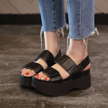 艾可茜尼厚底凉鞋女夏松糕鞋新款韩版休闲真皮运动凉鞋罗马摇摇鞋