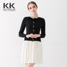 kk春季新品 小香风名媛珍珠花朵圆领 开衫毛衣外套 女 针织衫