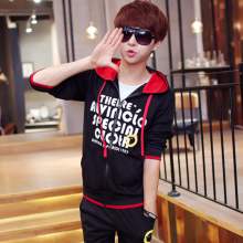 夏天男式短袖t恤衫运动套装青少年夏装潮休闲修身中学生男装一套