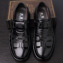 男鞋中老年爸爸鞋真皮软底休闲鞋防滑镂空透气凉鞋2017夏季老人鞋