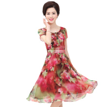 40-50中老年妇女夏季修身中长裙子母亲节妈妈装印花雪纺连衣裙女