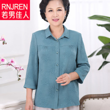 中老年衬衫女长袖老年人春装女上衣长袖衬衣50-60岁妈妈装七分袖