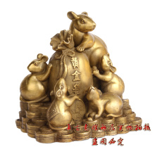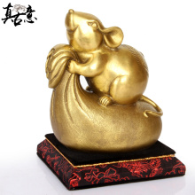 真古意开光风水纯铜鼠摆件黄金袋老鼠十二生肖鼠铜鼠摆件招财旺财