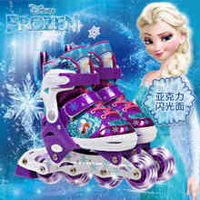 正品迪士尼 儿童直排轮滑鞋溜冰鞋男童女童旱冰鞋闪光全套装可调