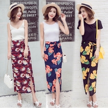 碎花半身裙夏2017新款修身开叉傣族风情不规则时尚长款半裙系带潮