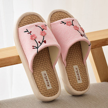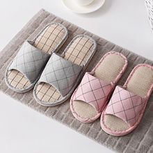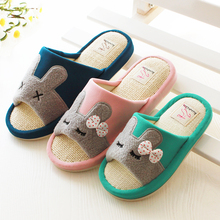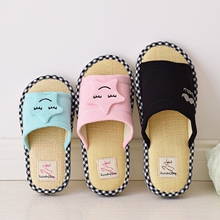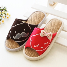 春夏季卡通凉拖鞋室内棉麻开口拖居家居情侣亚麻防滑地板拖鞋男女