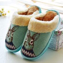 卡通兔子快鹿冬季保暖棉拖鞋情侣居家居鞋厚底防水室内毛毛拖男女