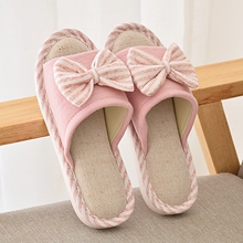 日式蝴蝶结木地板拖鞋情侣棉亚麻开口鞋拖室内防滑居家鞋春夏男女
