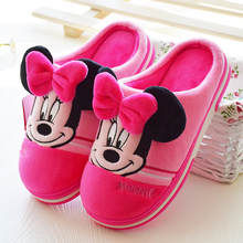 迪士尼米奇米妮卡通棉拖鞋冬季儿童毛拖男女宝宝家居鞋亲子地板拖