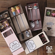 创意不锈钢叉勺套装日韩国可爱卡通长短勺子叉子甜品西餐调羹礼盒